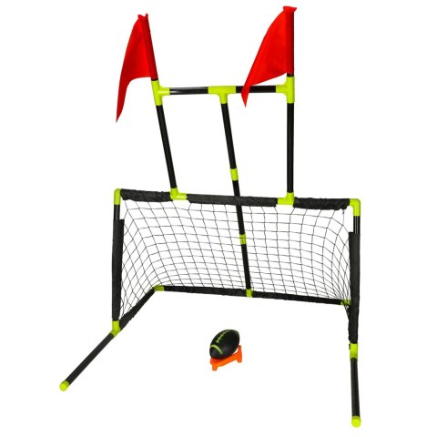 Piłka nożna, koszykówka, hokej, rugby, a także ćwiczenia na celność - to wszystko ma do zaoferowania nasz zestaw. Nie musisz kupować oddzielnych bramek do każdego sportu - dzięki modułowej konstrukcji możesz raz-dwa przekształcić bramkę do piłki nożnej w tarczę do ćwiczenia celności czy kosz do koszyków. Co więcej, nie musisz też się martwić o zakup niezbędnego sprzętu do treningów. W zestawie masz już wszystkie niezbędne akcesoria: trzy dmuchane piłki (do piłki nożnej, do koszyków oraz rugby), plastikowe piłeczki do rzutów na celność, krążek i kije hokejowe, a nawet siatki, pompkę i plastikowe śledzie to zakotwiczenia bramki.