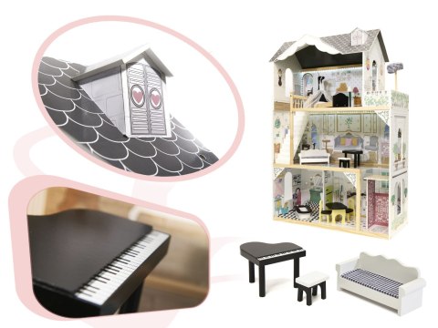 Piękny drewniany domek dla lalek w nowoczesnym stylu, będzie spełnieniem marzeń każdego dziecka.