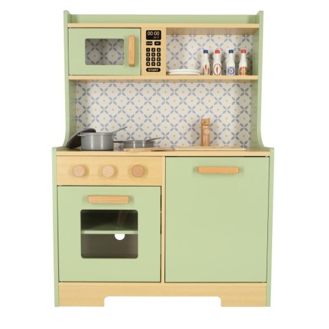 Drewniana kuchnia dla dzieci w miętowym kolorze to własne miejsce malucha, w którym może odkrywać tajniki sztuki gotowania i uczyć się nowych umiejętności!