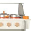 Podczas wcielania się w rolę wprawionego kucharza, maluch będzie również ćwiczył swoje zdolności manualne poprzez krojenie produktów drewnianym nożem czy poprzez przekręcanie zabawkowych pokręteł.