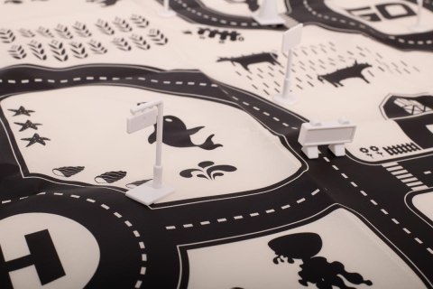 • Mata do zabawy miasto ulica + znaki drogowe wodoodporna kremowa 130x100cm