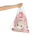 posiada podwójne boczne sznurki, które umożliwiają noszenie worka w rękach, na ramieniu czy na plecach