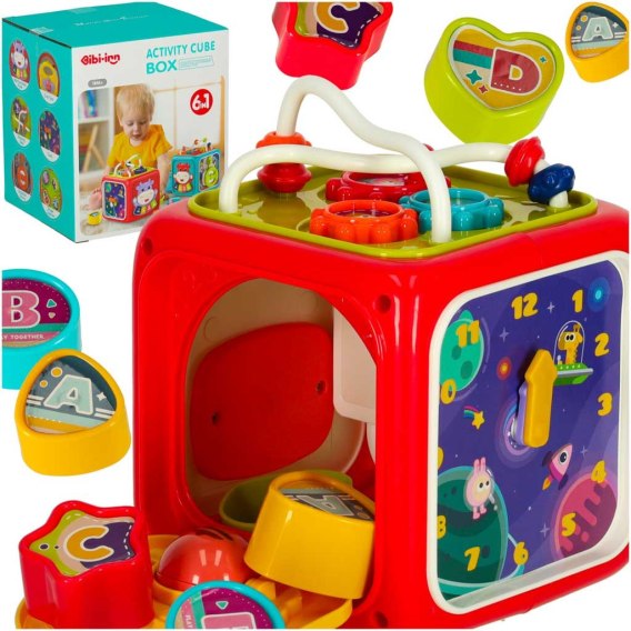 Kostka edukacyjna interaktywna pianinko 6w1 Bibi-inn czerwona